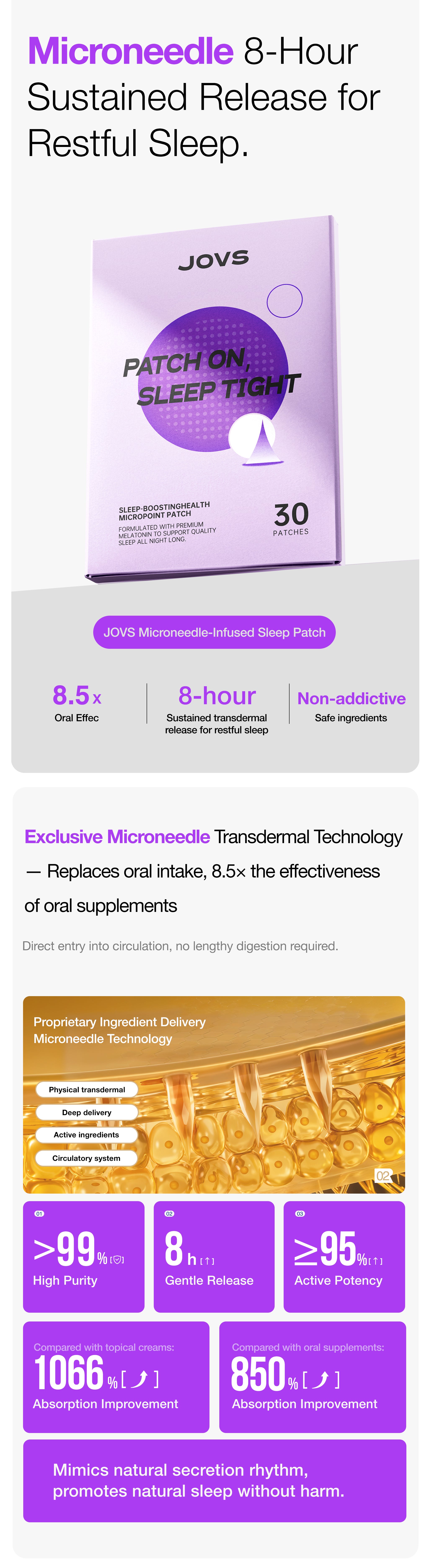 • 500μm micro-needles: 8.5× deeper absorption, bypassing digestion