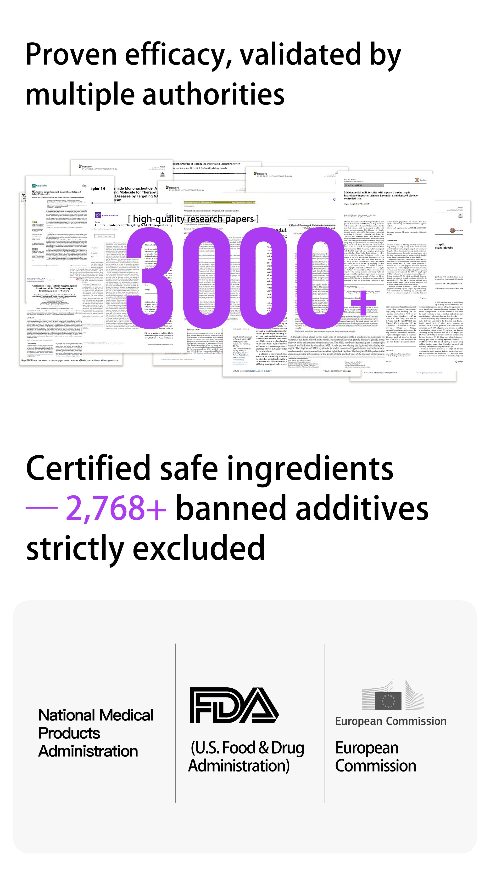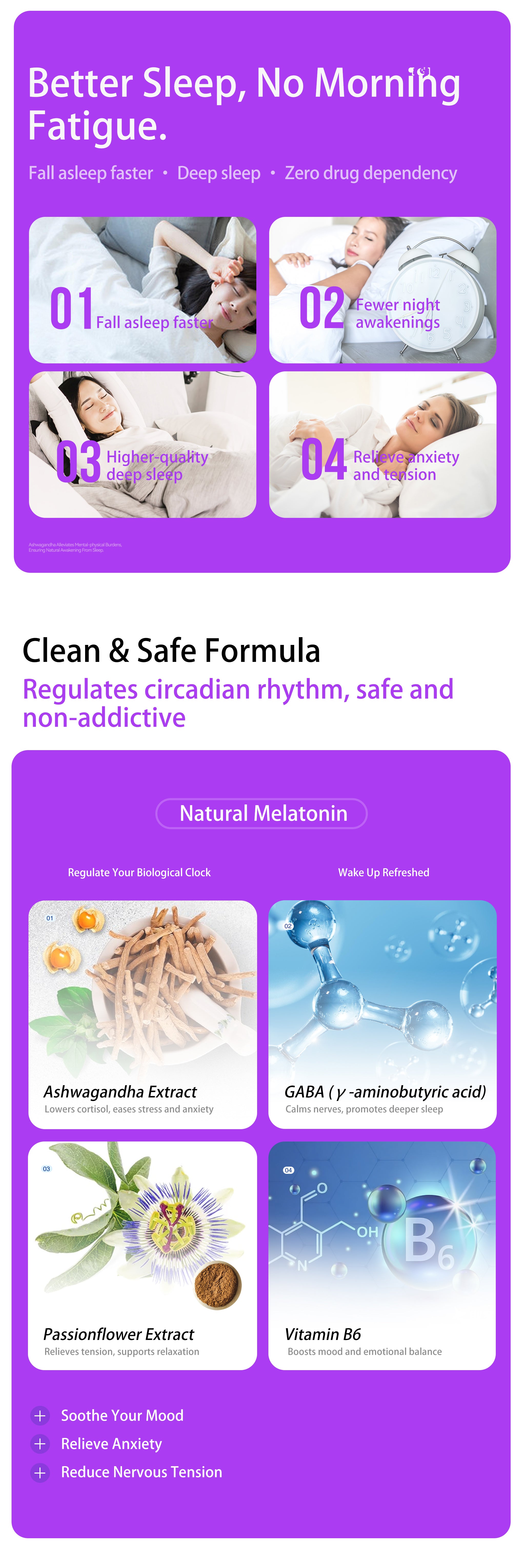 • Proven actives: Melatonin, GABA & herbal extracts