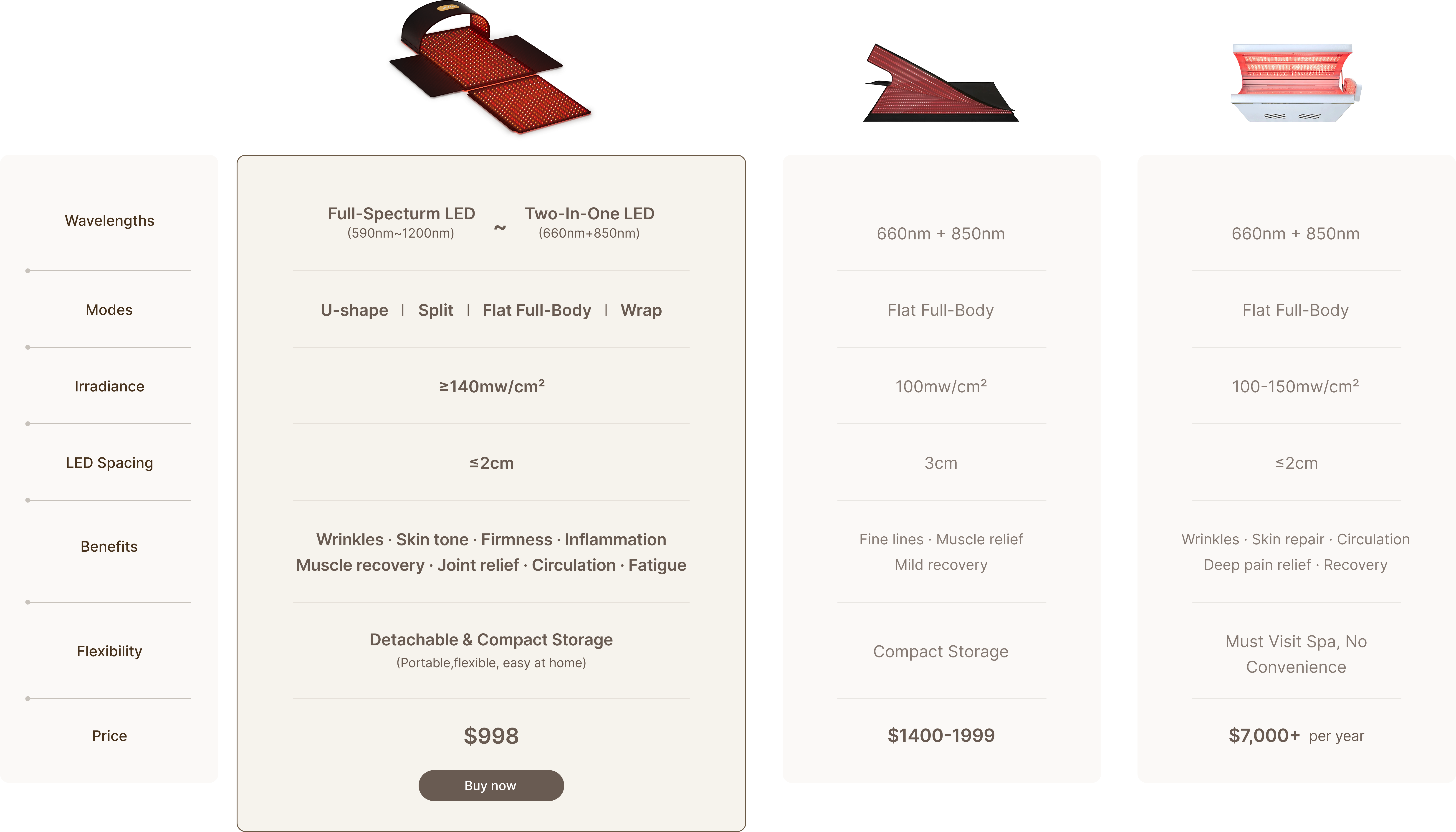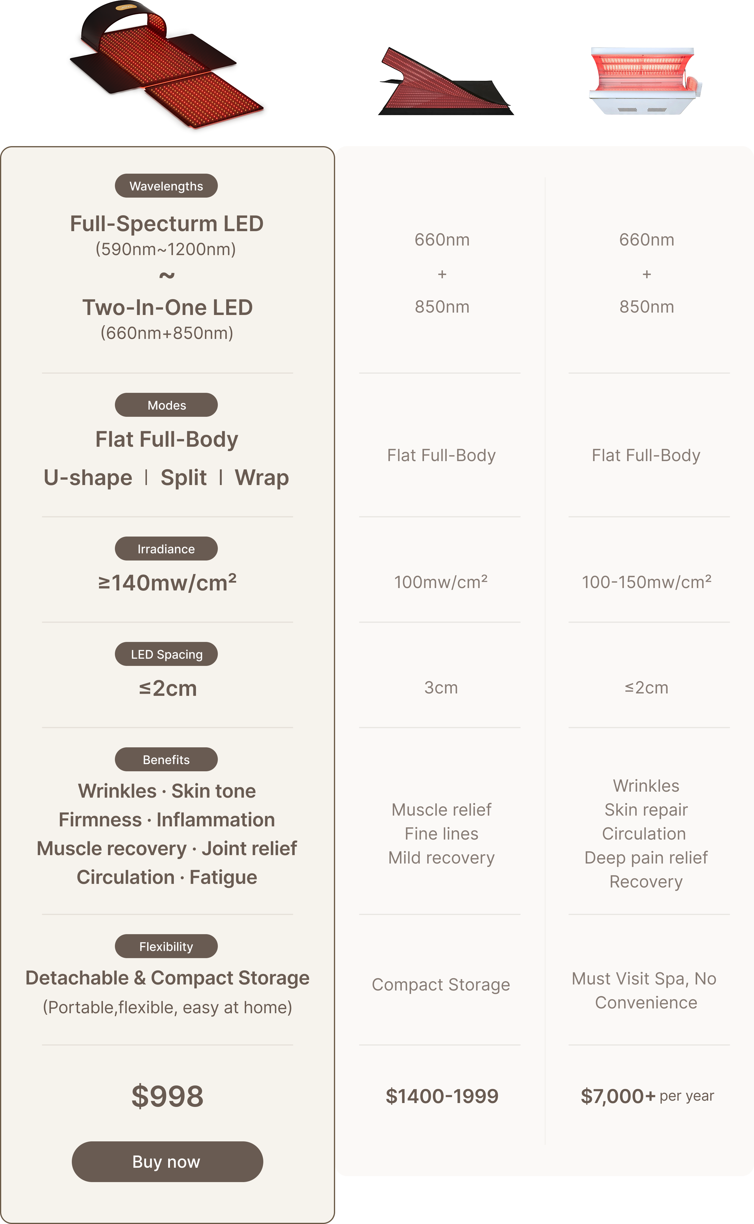 Versatile & Modular — Face, body, wrap, or split mat modes offer targeted or full-body red light therapy.