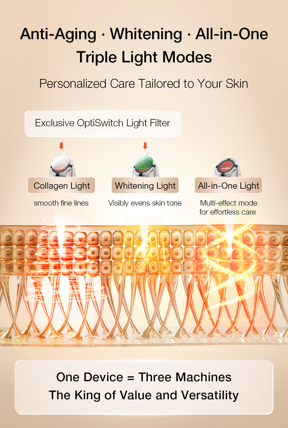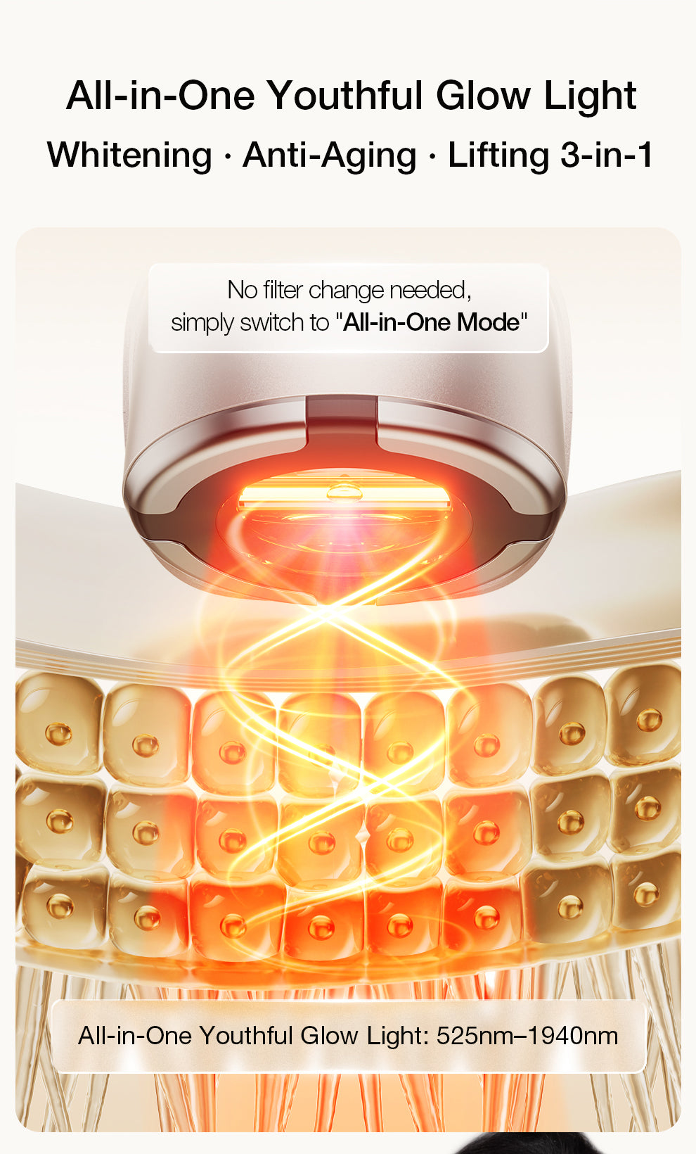 · Red Light Renewal – Boosts collagen, brightens tone.